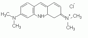 | Acridin Orange (AO) ist membranpermeabel, bis es in ein saures Kompartiment gelangt, dissoziert und dann Membranen nicht mehr gut durchdringen kann (KNAPP & SWANSON 1990). AO wird daher in Lysosomen akkumuliert, wobei mit zunehmender Konzentration das emittierte Fluoreszenzlicht von Grün nach Orange-Rot wechselt (HART & YOUNG 1975; MATTEONI & KREIS 1987) Die Fluoreszenzfarbe ist aber auch pH-abhängig. Durch die Akkumulation kann AO osmotisch wirksam werden und zu einer Deformation der Lysosomen führen (KNAPP & SWANSON 1990). Nach kurzer Färbezeit (ca. 10 min) werden die Zellen gewaschen, die gefärbten Organellen halten aber den Farbstoff mehrere Tage. |